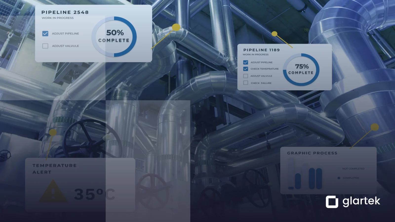 - Make the process digital: first, our supports managers and technicians with all the key features digitize the process and increase safety. For example, the digitized process can be materialized through step-by-step process, 2D or Augmented Reality (AR) guides. Different task inputs are prepared for front-line workers’ guidance, according to the operation’s needs and goals. Digitized locks, notifications and alerts can also be activated, on the digital platform, in order to notify workers in real-time.
